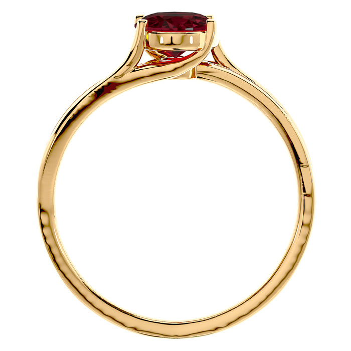This elegant gemstone ring features one 8x6mm oval shape garnet gemstone at approximately 1 1/2 carats. It is surrounded by 14 sparkling diamonds in I-J color, I1-I2 clarity at 1/5 carat total weight. Total gem weight is approximately 1 3/4 carats. This ring is in 14 karat yellow gold.