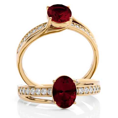 1 3/4 Carat Oval Shape Garnet and Diamond Ring In 14 Karat Yellow Gold
