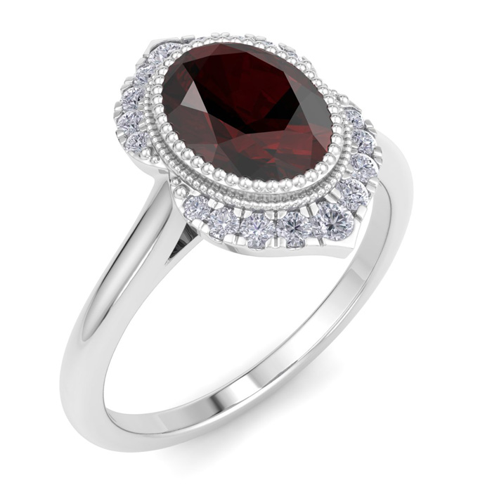 Retrograde Birthstones™ 1 3/4 Carat Oval Shape Garnet and Diamond Ring In 14K White Gold