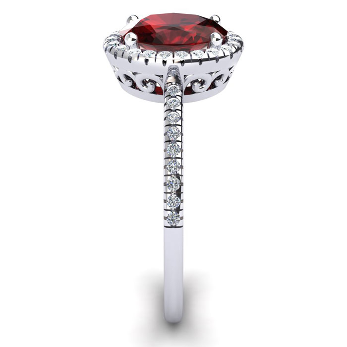 1 3/4 Carat Oval Shape Garnet and Halo Diamond Ring In 14 Karat White Gold