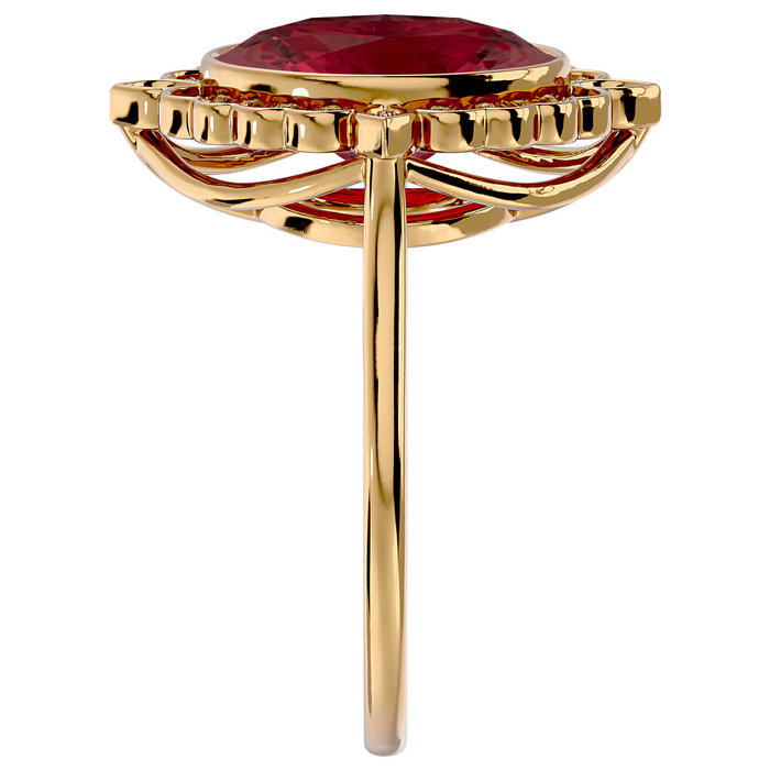 Retrograde Birthstones™ 1 3/4 Carat Oval Shape Garnet and Halo Diamond Ring In 14 Karat Yellow Gold