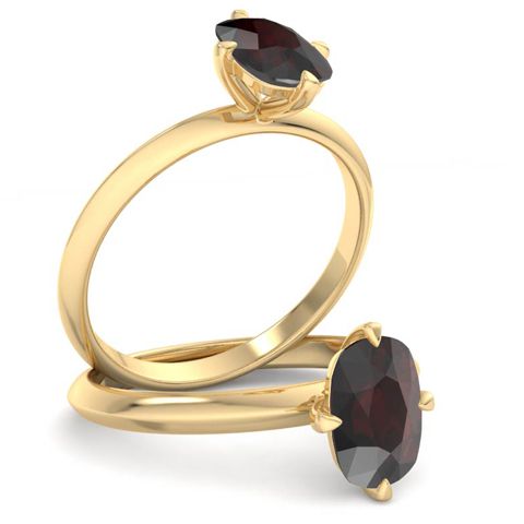 This gemstone ring features one 7x5mm antique cushion shape garnet gemstone weighing approximately 1 carat. This ring is in 14 karat yellow gold.