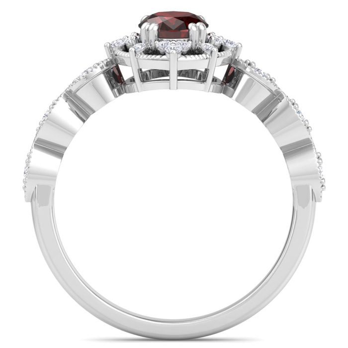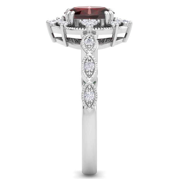 1 Carat Garnet and Halo Diamond Ring In 14K White Gold