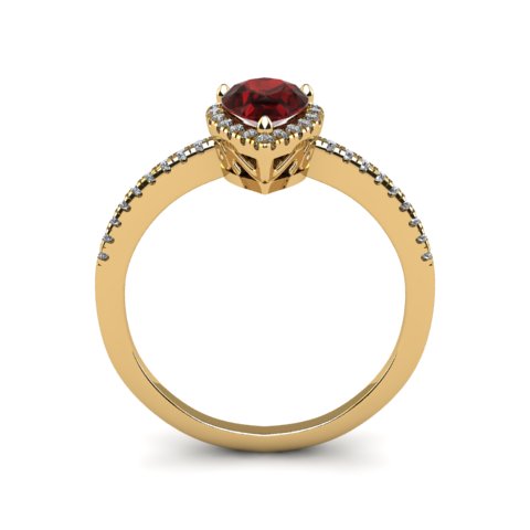 1 Carat Pear Shape Garnet and Halo Diamond Ring In 14 Karat Yellow Gold
