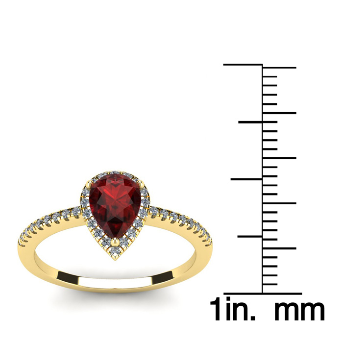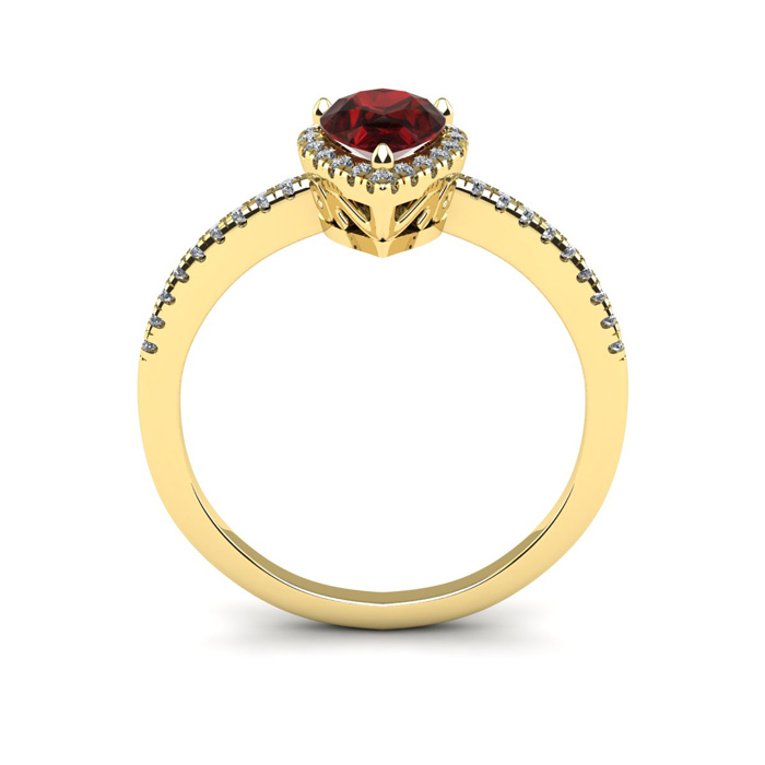 1 Carat Pear Shape Garnet and Halo Diamond Ring In 14 Karat Yellow Gold