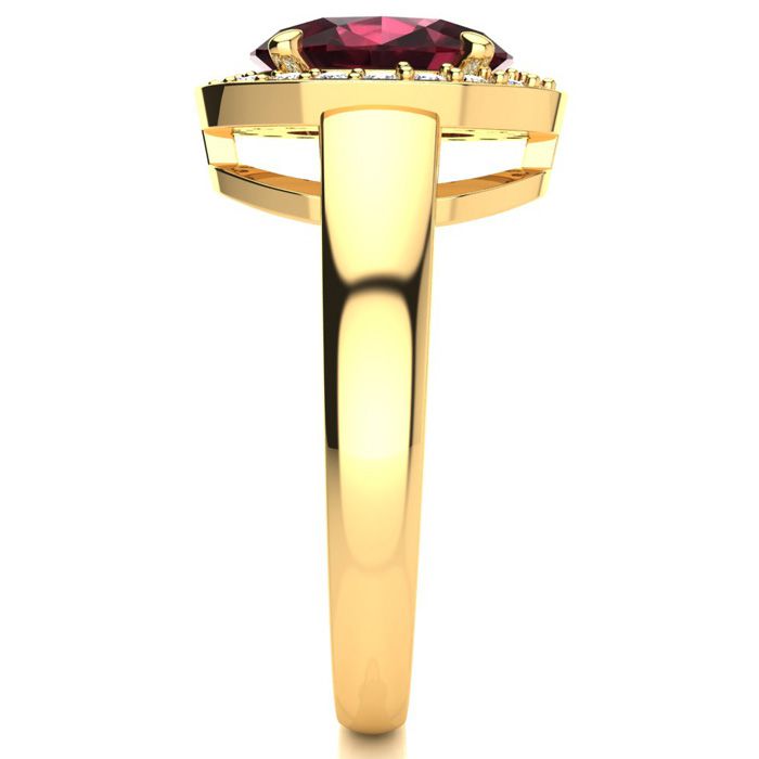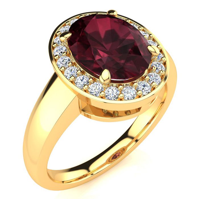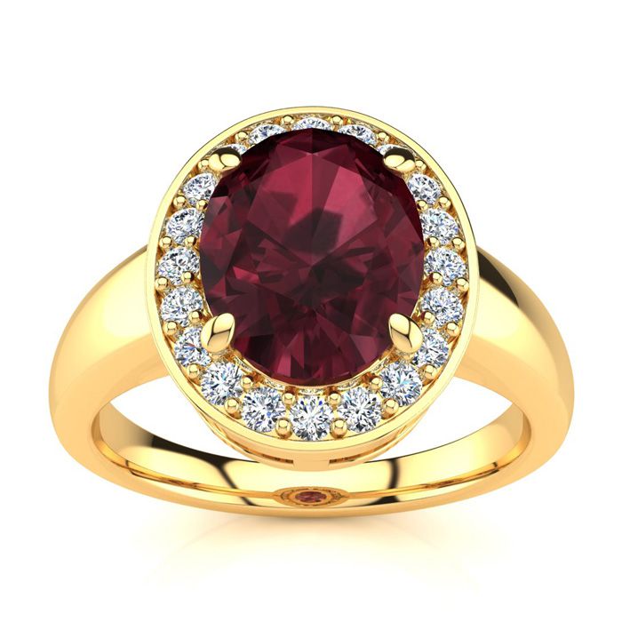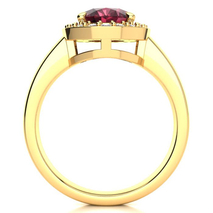 2 1/5 Carat Oval Shape Garnet and Halo Diamond Ring In 14 Karat Yellow Gold