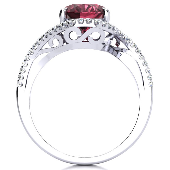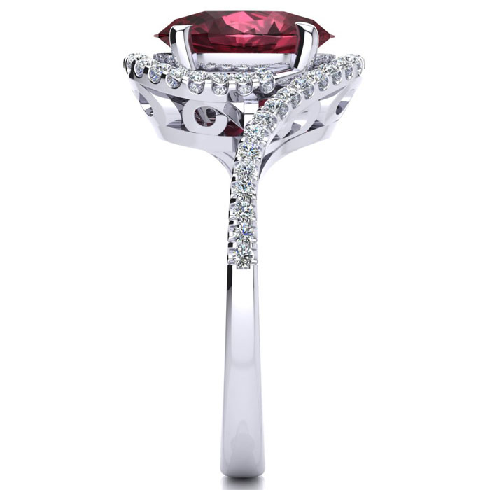 2 3/4 Carat Oval Shape Garnet and Halo Diamond Ring In Sterling Silver