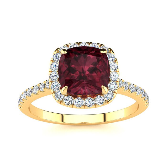 2 Carat Cushion Cut Garnet and Halo Diamond Ring In 14K Yellow Gold