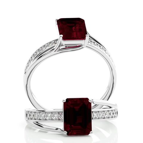 2 Carat Emerald Shape Garnet and Diamond Ring In 14 Karat White Gold