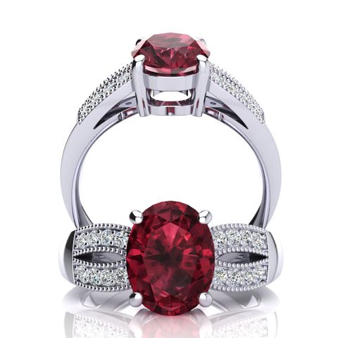2 Carat Oval Shape Garnet and Diamond Ring In 14 Karat White Gold