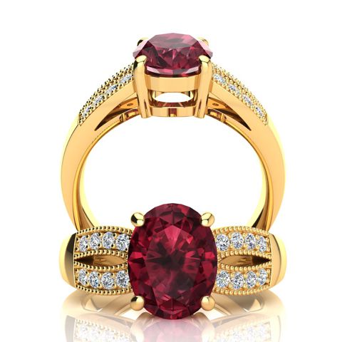 2 Carat Oval Shape Garnet and Diamond Ring In 14 Karat Yellow Gold