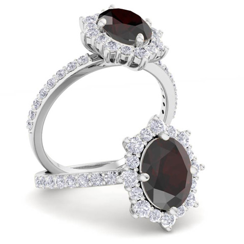 2 Carat Oval Shape Garnet and Diamond Ring In 14K White Gold