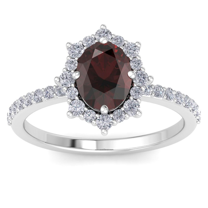 2 Carat Oval Shape Garnet and Diamond Ring In 14K White Gold