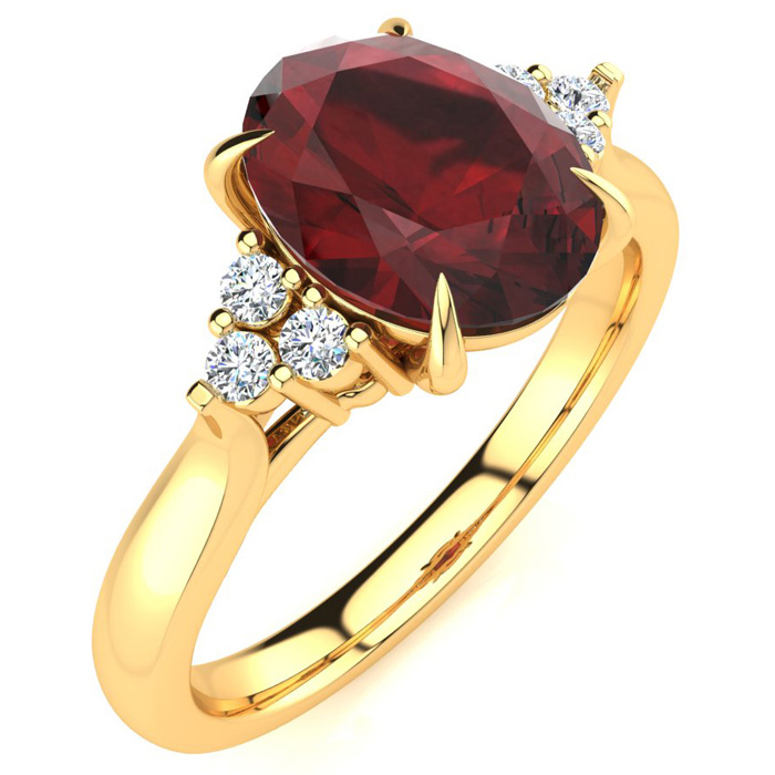 2 Carat Oval Shape Garnet and Diamond Ring In 14K Yellow Gold