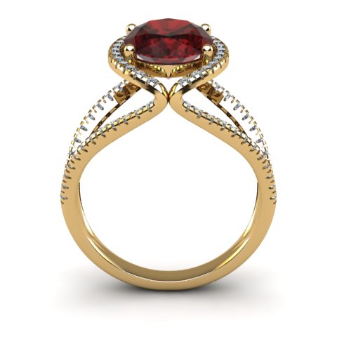 2 Carat Oval Shape Garnet and Halo Diamond Ring In 14 Karat Yellow Gold