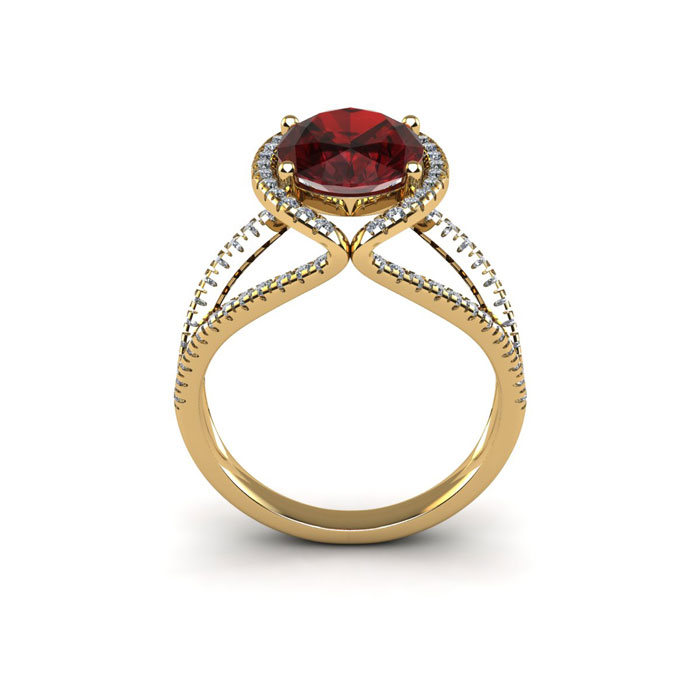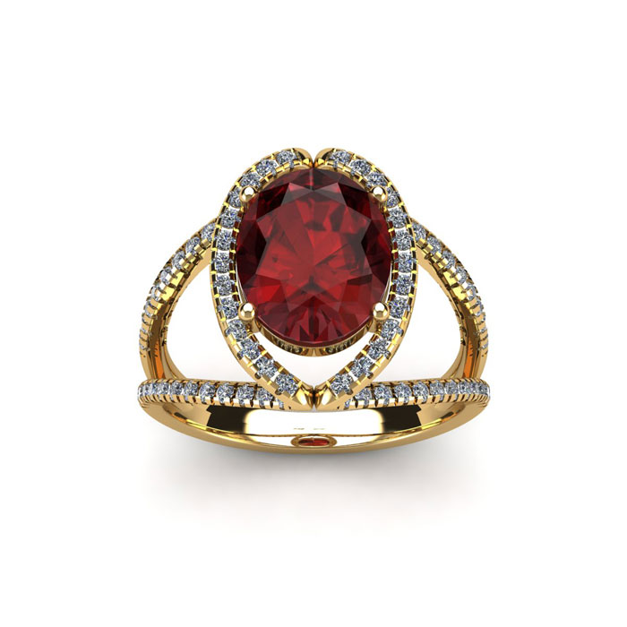 Retrograde Birthstones™ 2 Carat Oval Shape Garnet and Halo Diamond Ring In 14 Karat Yellow Gold