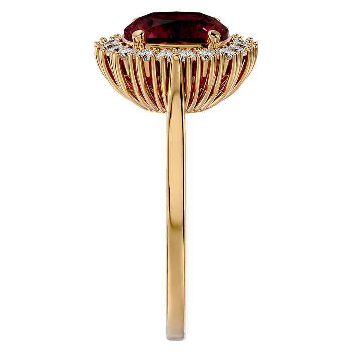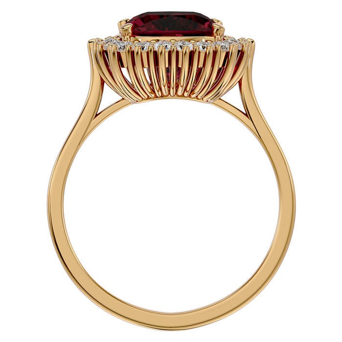 Retrograde Birthstones™ 3 1/2 Carat Cushion Cut Garnet and Halo Diamond Ring In 14K Yellow Gold