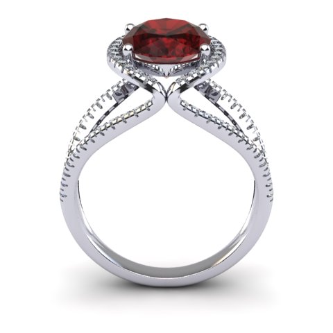 3 1/2 Carat Oval Shape Garnet and Halo Diamond Ring In 14 Karat White Gold