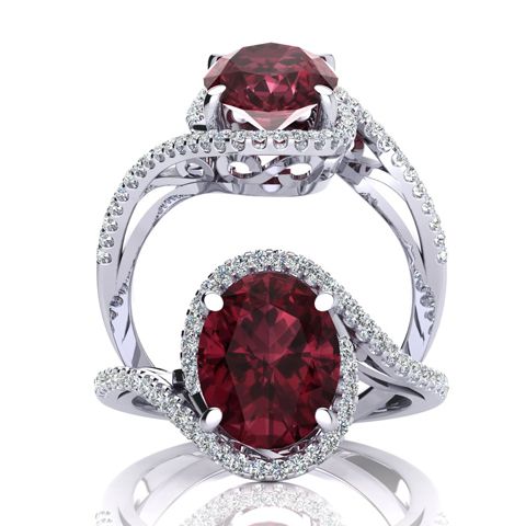 3 1/3 Carat Oval Shape Garnet and Halo Diamond Ring In 14 Karat White Gold
