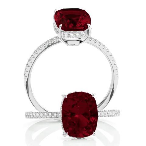 3 3/4 Carat Antique Cushion Shape Garnet and Hidden Halo Diamond Ring In 14 Karat White Gold