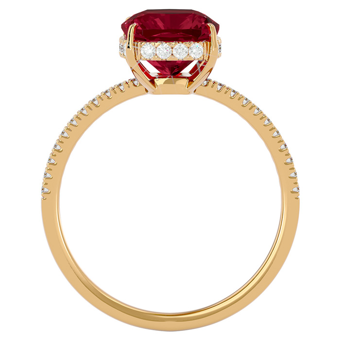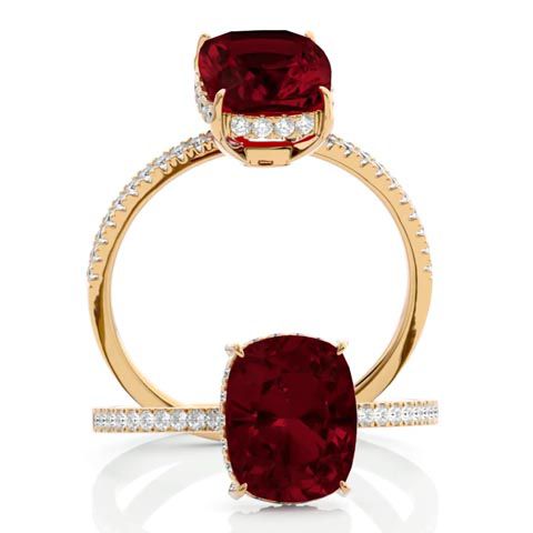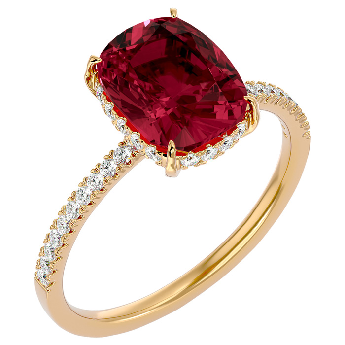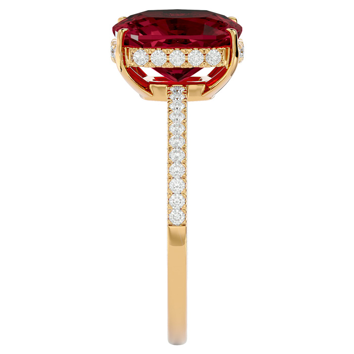 3 3/4 Carat Antique Cushion Shape Garnet and Hidden Halo Diamond Ring In 14 Karat Yellow Gold