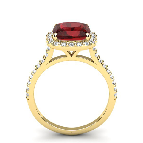 3 3/4 Carat Cushion Cut Garnet and Halo Diamond Ring In 14K Yellow Gold