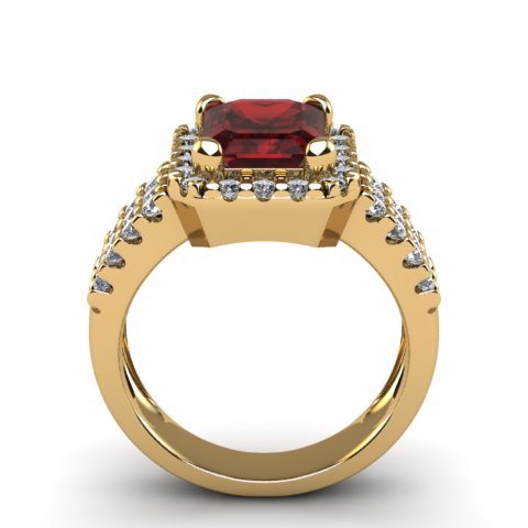 3 3/4 Carat Garnet and Halo Diamond Ring In 14 Karat Yellow Gold