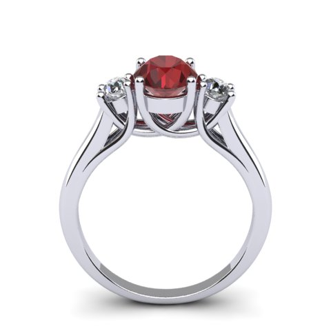 3/4 Carat Oval Shape Garnet and Two Diamond Ring In 14 Karat White Gold