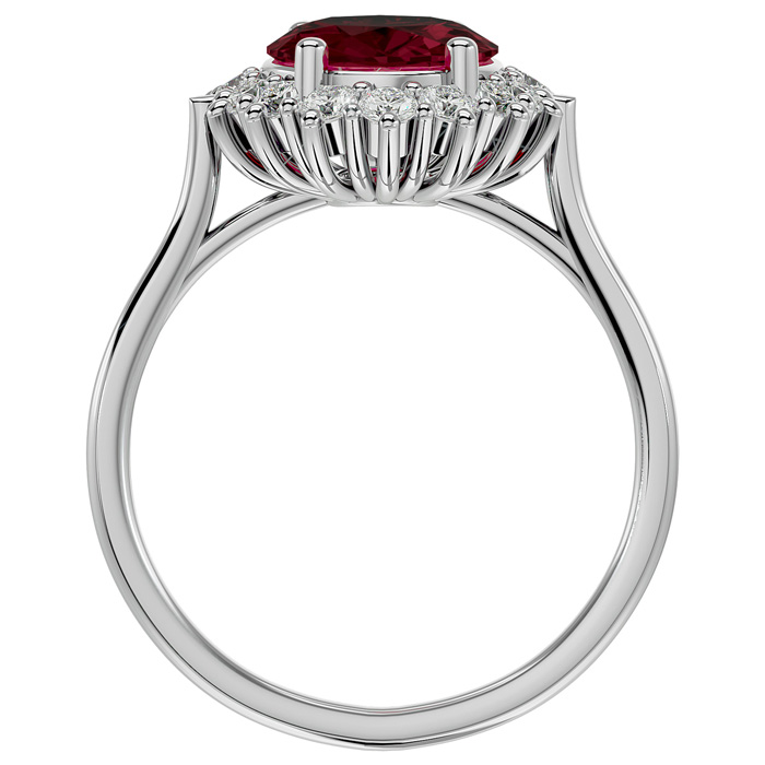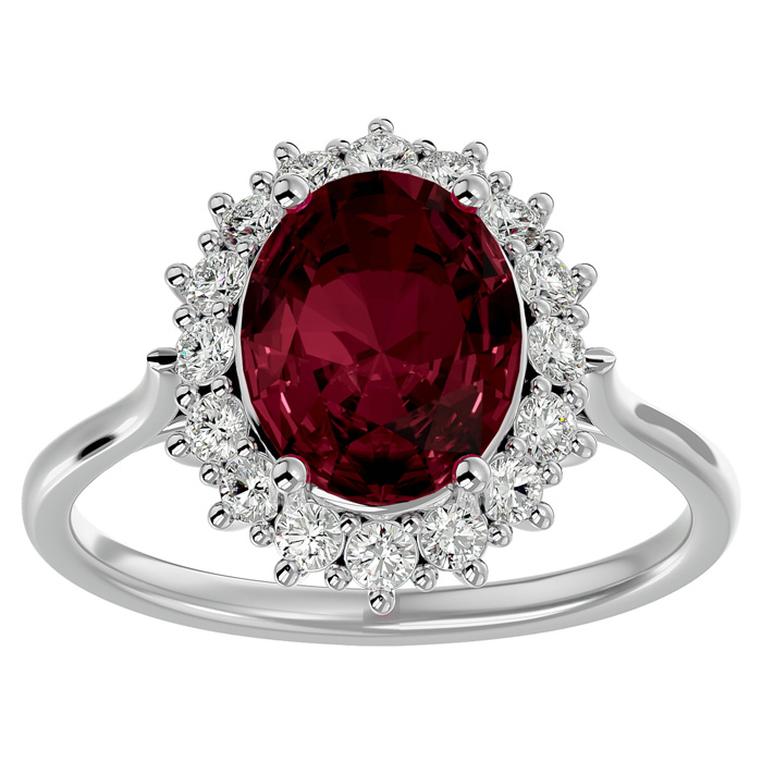 3.60 Carat Oval Shape Garnet and Halo Diamond Ring In 14 Karat White Gold