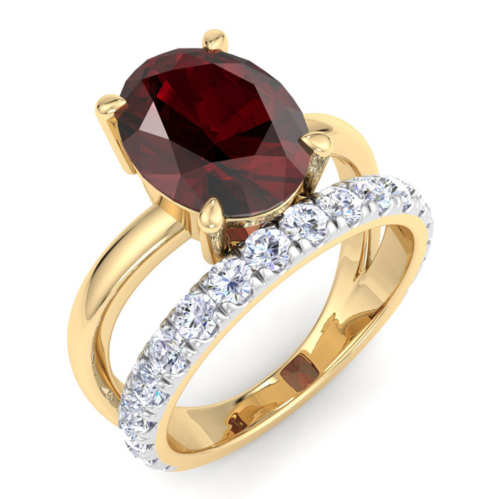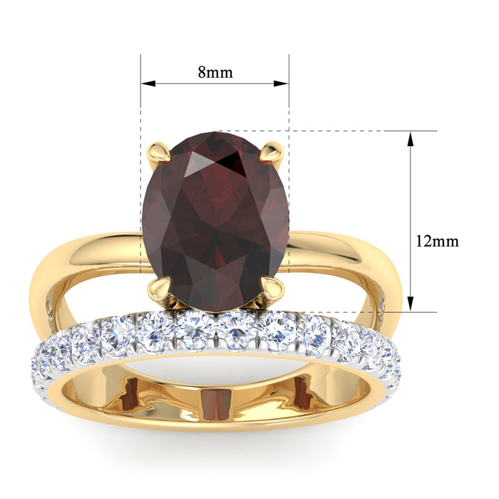3.60 Carat Oval Shape Garnet and Halo Diamond Ring Plus Band In 14 Karat Yellow Gold