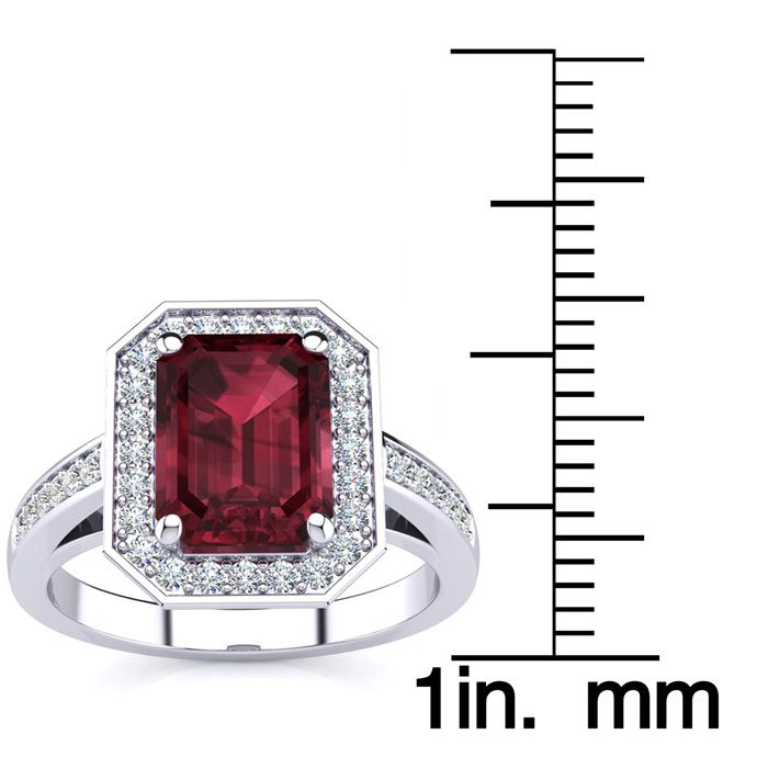 3 Carat Garnet and Halo Diamond Ring In 14 Karat White Gold