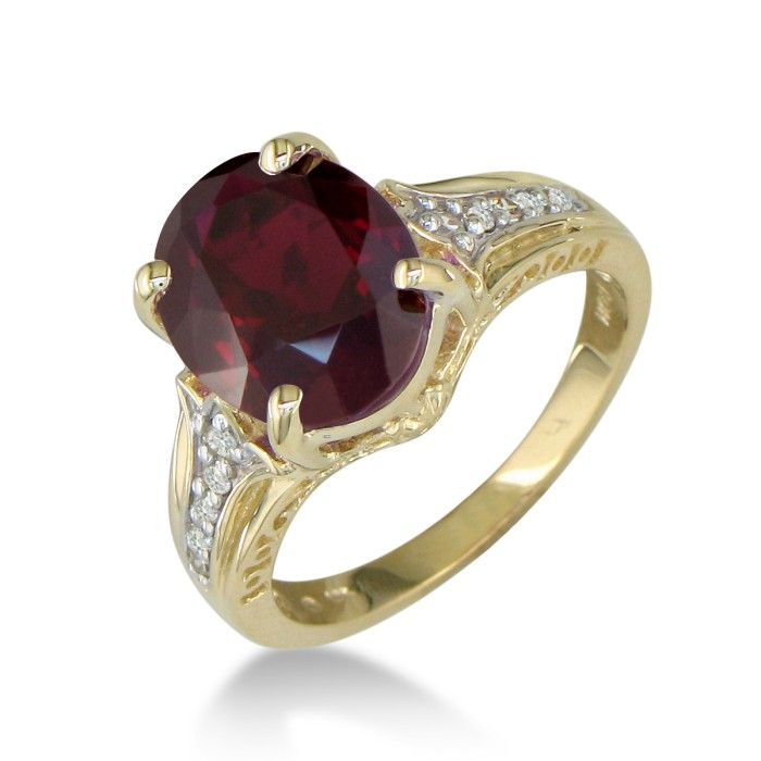 This large 4 carat garnet and diamond ring is sure to get you noticed! I love how the band has diamonds down each side and the deep red pops against the gold. This is a great statement piece and adds that pop of color to any look.