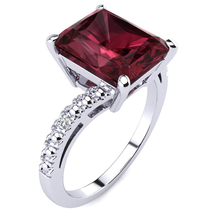 4ct Octagon Garnet and Diamond Ring in 10k White Gold