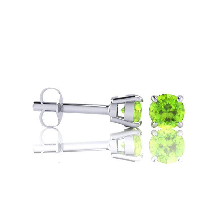 These amazing peridot earrings feature two peridot gemstones totaling 1 1/2 carats. These earrings are in 14 karat white gold filled metal and have post with friction backs.