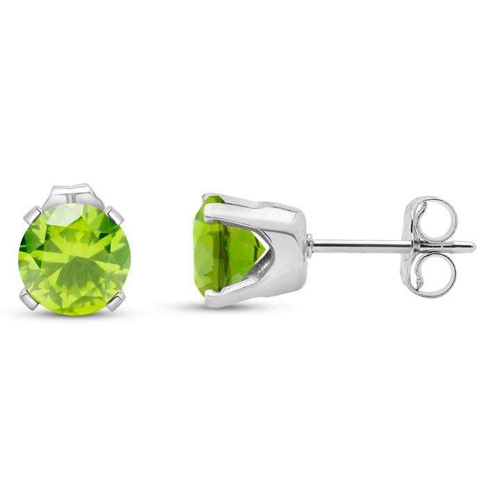 These amazing peridot earrings feature two peridot gemstones totaling 1 1/2 carats. These earrings are in 14 karat white gold filled metal and have post with friction backs.