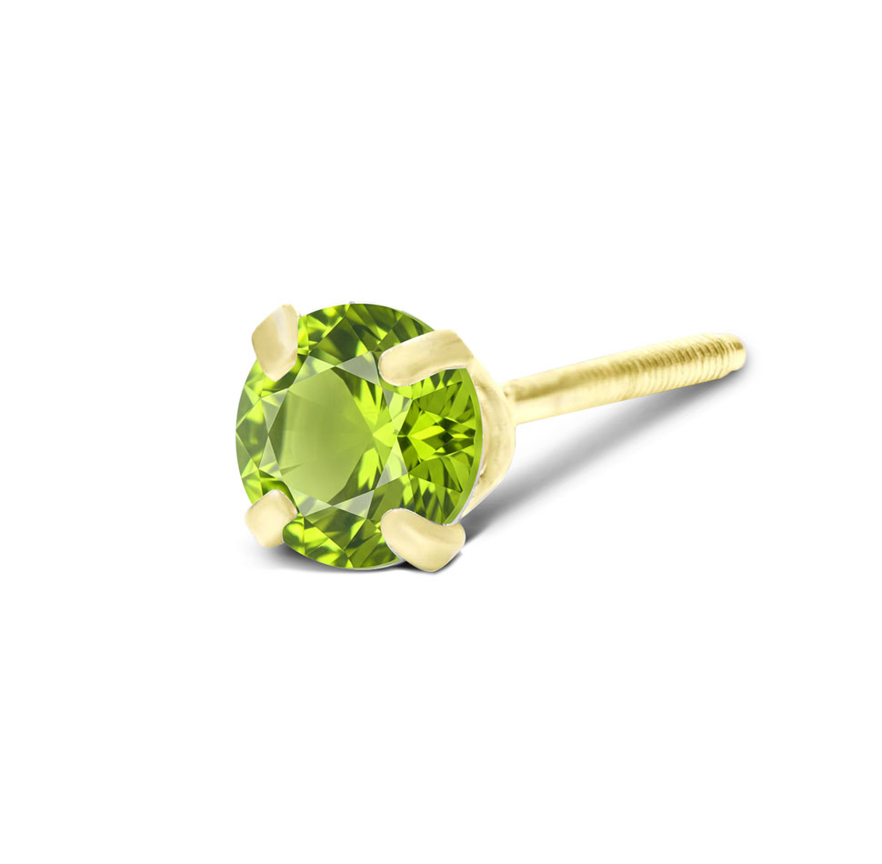 These amazing peridot earrings feature two peridot gemstones totaling 1/4 carat. These earrings are in 14 karat yellow gold filled metal and have post with friction backs.