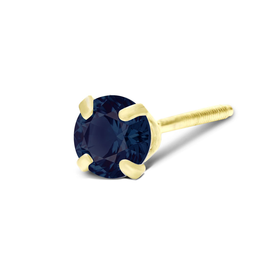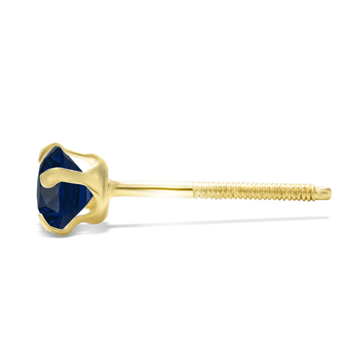 These amazing sapphire earrings feature two created sapphire gemstones totaling 1/4 carat. These earrings are in 14 karat yellow gold filled metal and have post with friction backs.