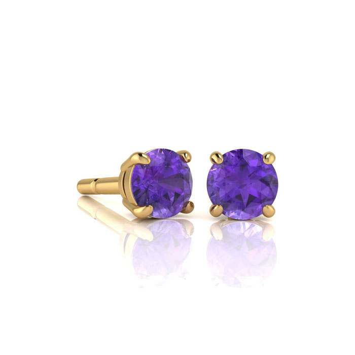 1 Carat Amethyst Stud Earrings In Yellow Gold