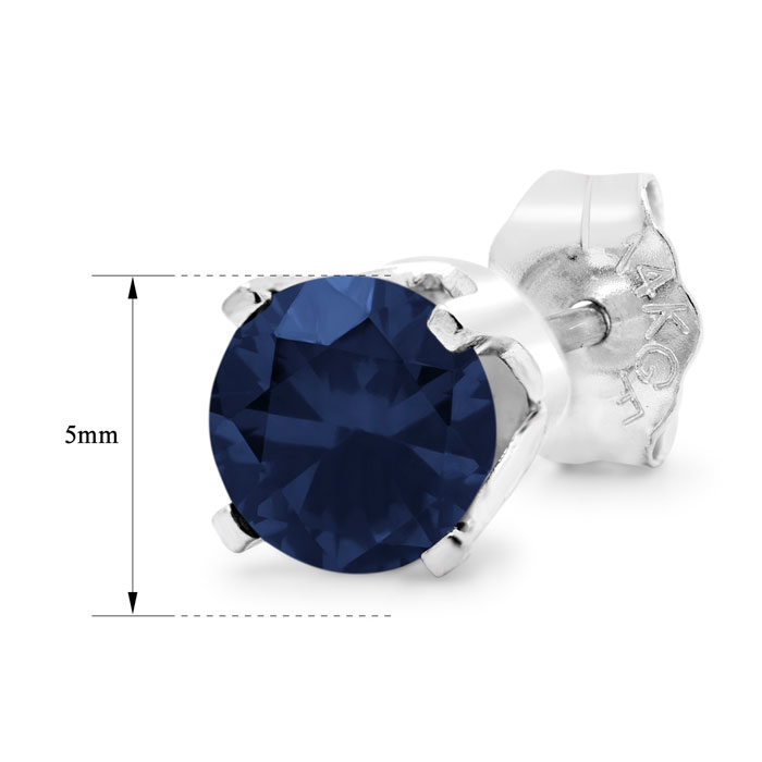These amazing sapphire earrings feature two created sapphire gemstones totaling 1 carat. These earrings are in 14 karat white gold filled metal and have post with friction backs.