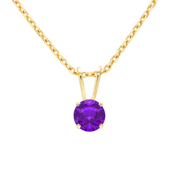 This amazing amethyst necklace features one amethyst gemstone totaling 1/2 carat. This necklace is in 14 karat yellow gold filled metal and comes with a free, 18 inch, yellow gold over sterling silver cable chain with a spring-ring clasp.