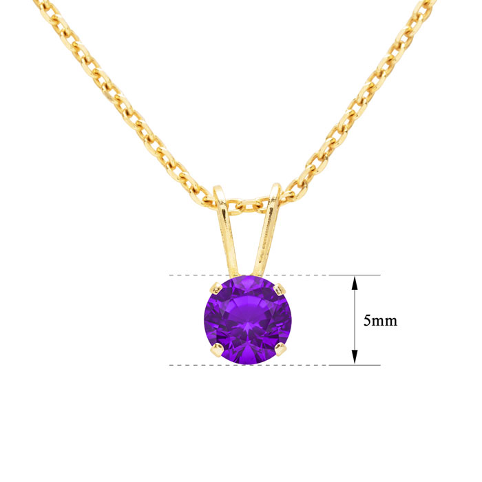 1/2 Carat Amethyst Solitaire Necklace In Yellow Gold With Free Chain
