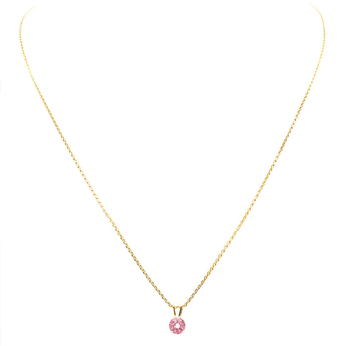 1/4 Carat Pink Topaz Solitaire Necklace In Yellow Gold With Free Chain