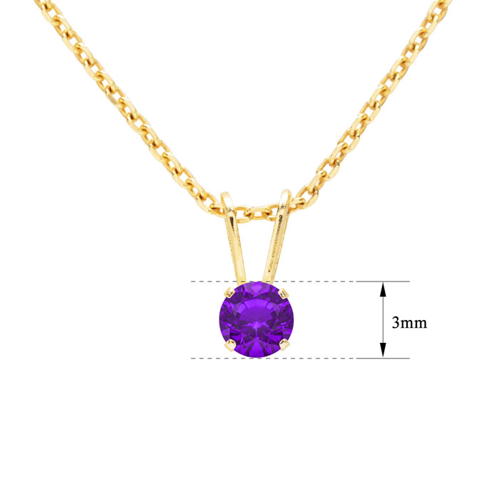 1/8 Carat Amethyst Solitaire Necklace In Yellow Gold With Free Chain
