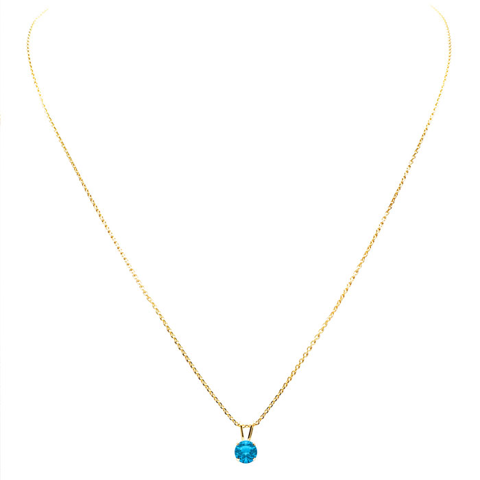 1/8 Carat Blue Topaz Solitaire Necklace In Yellow Gold With Free Chain