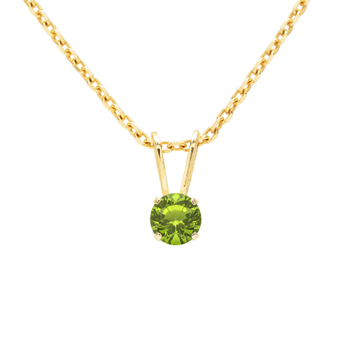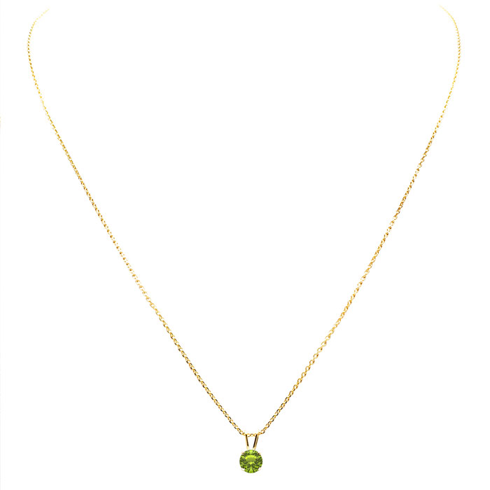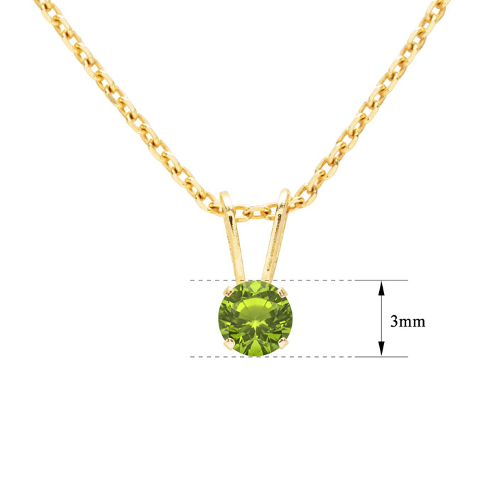 1/8 Carat Peridot Solitaire Necklace In Yellow Gold With Free Chain