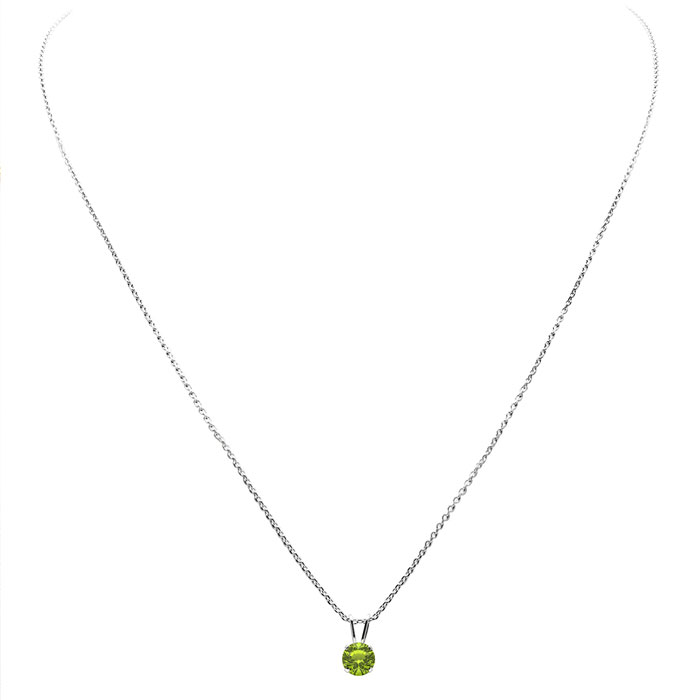 1 Carat Peridot Solitaire Necklace In White Gold With Free Chain