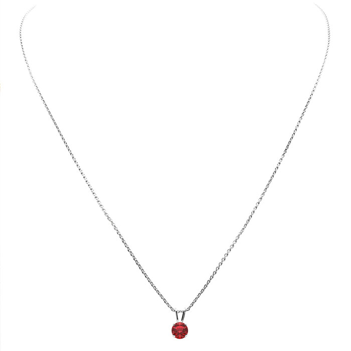 1 Carat Ruby Solitaire Necklace In White Gold With Free Chain