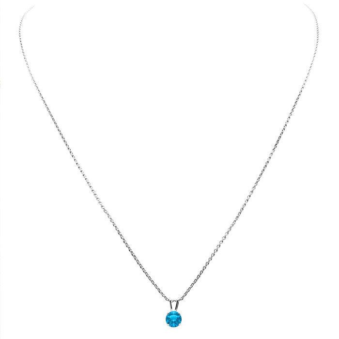 This amazing blue topaz necklace features one blue topaz gemstone totaling 3/4 carat. This necklace is in 14 karat white gold filled metal and comes with a free, 18 inch, sterling silver cable chain with a spring-ring clasp.