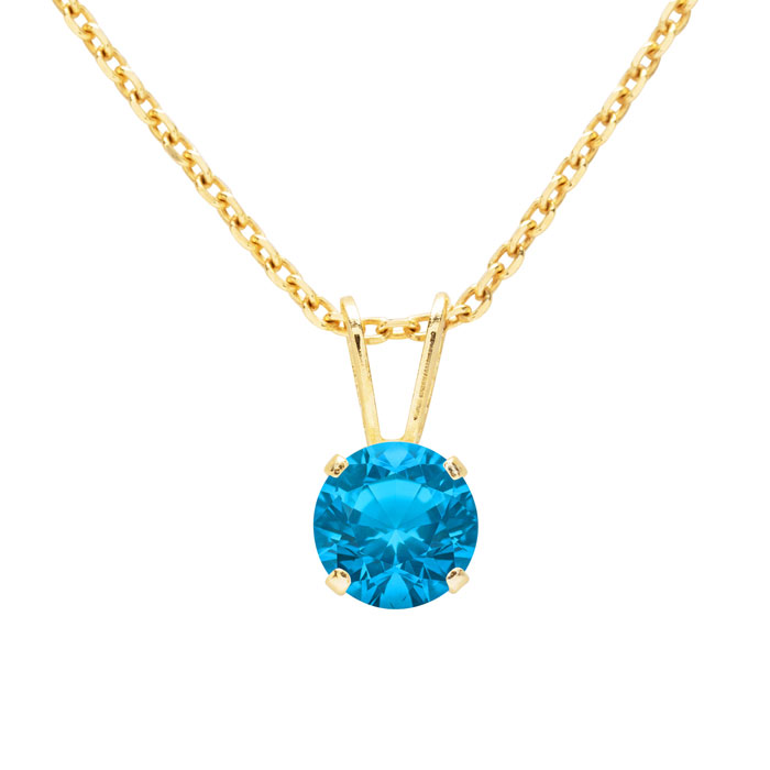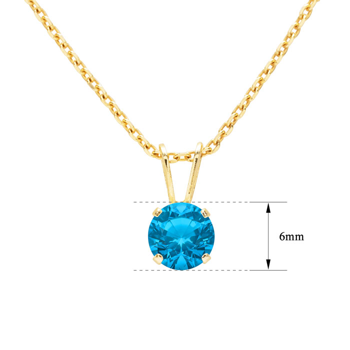 3/4 Carat Blue Topaz Solitaire Necklace In Yellow Gold With Free Chain
