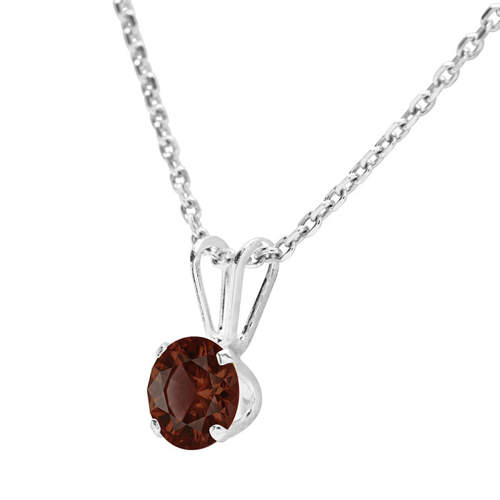 3/4 Carat Garnet Solitaire Necklace In White Gold With Free Chain